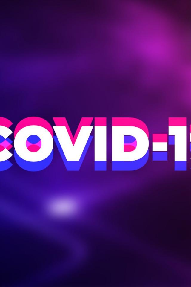 Обои Надпись COVID-19 коронавирус на фиолетовом фоне
