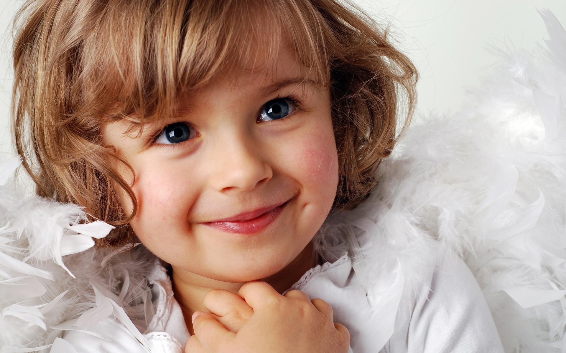 Обои Маленькая голубоглазая девочка в костюме ангела