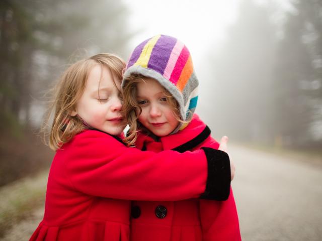 Обои Две маленькие девочки обнимают друг друга