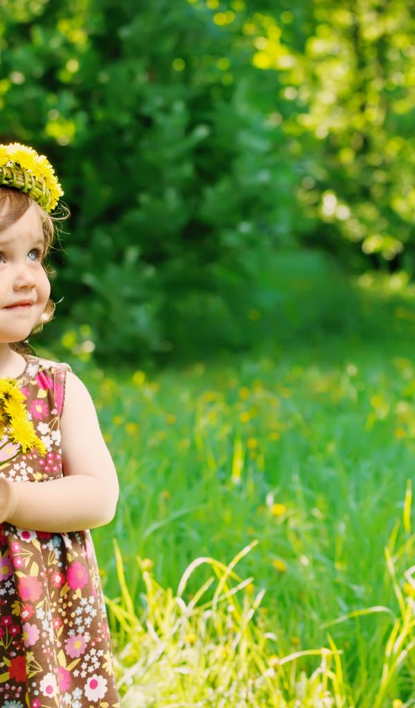 Обои Маленькая девочка с букетом одуванчиков