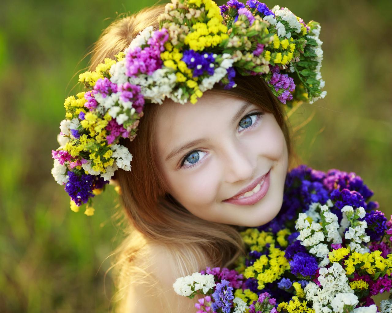 Обои Маленькая голубоглазая девочка с полевыми цветами