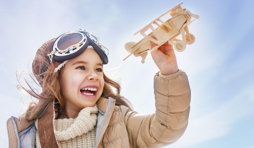 Обои Маленькая улыбающаяся девочка с самолетом в руках