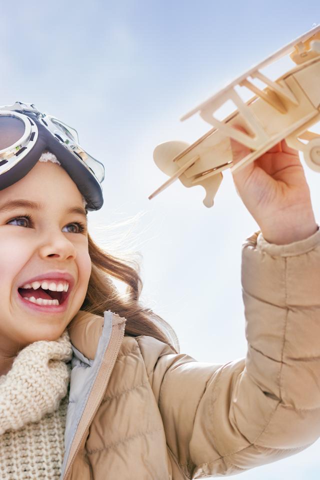 Обои Маленькая улыбающаяся девочка с самолетом в руках