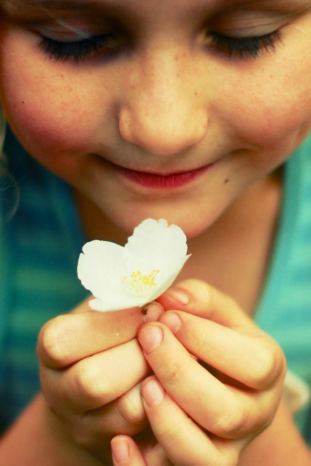 Обои Маленькая девочка держит белый цветок