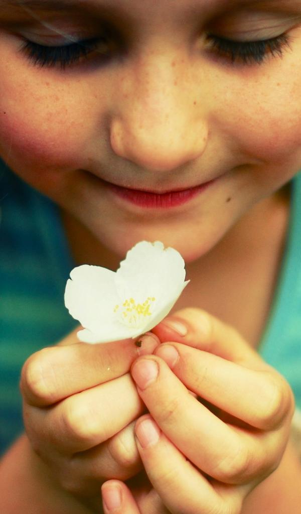 Обои Маленькая девочка держит белый цветок