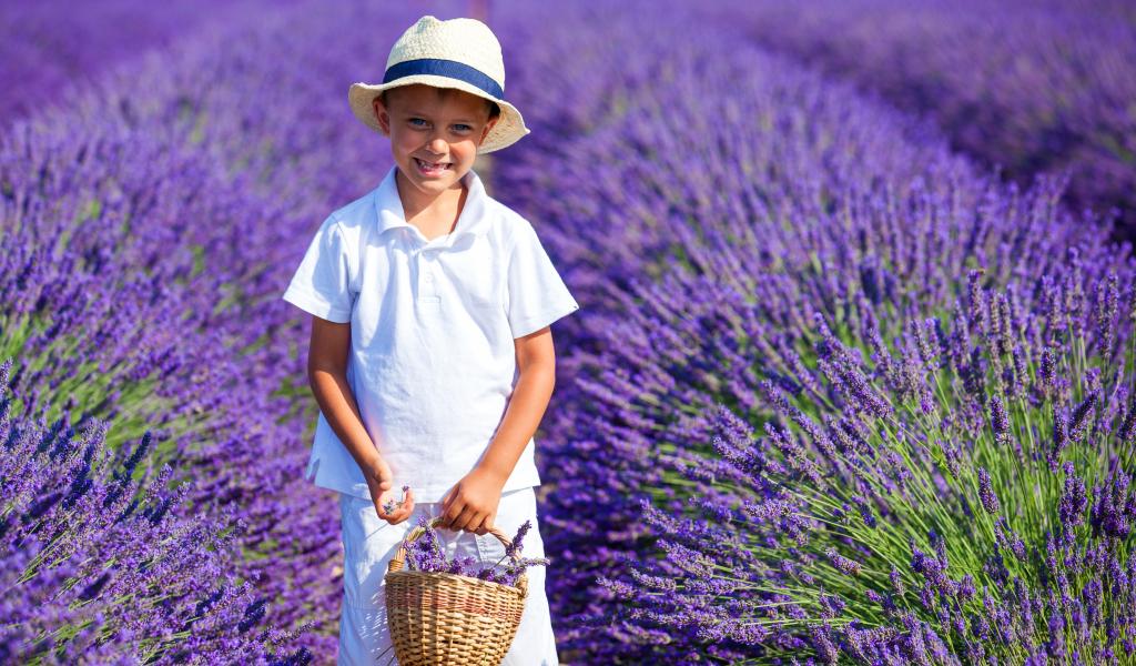 Обои Улыбающийся мальчик на поле фиолетовой лаванды