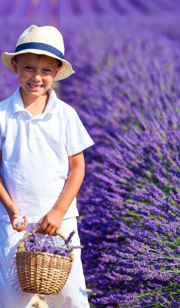 Обои Улыбающийся мальчик на поле фиолетовой лаванды