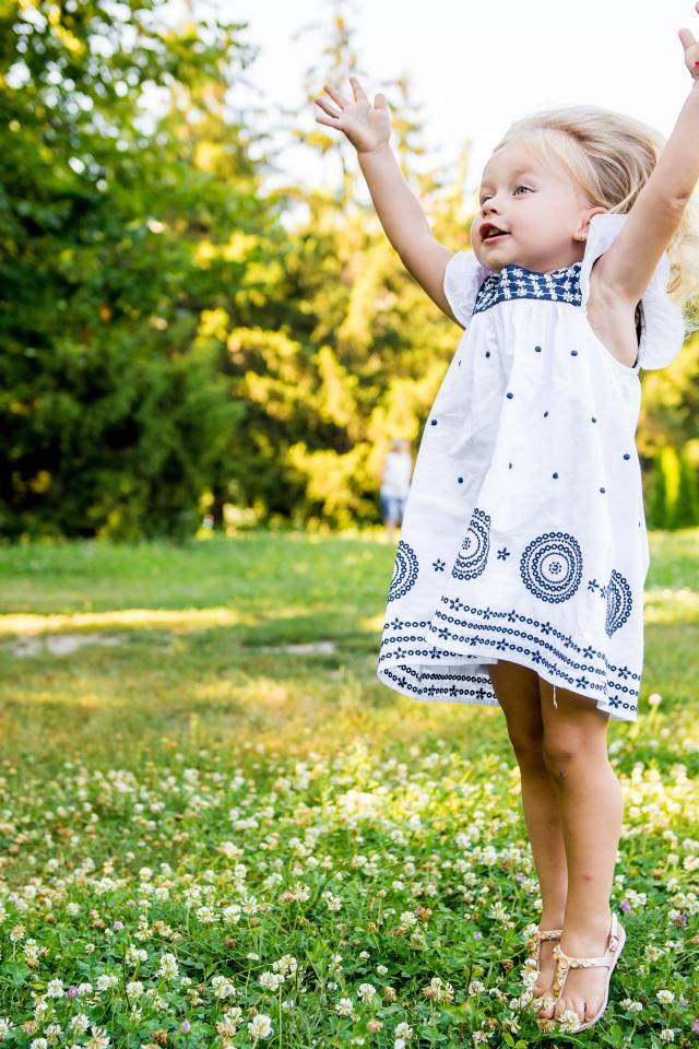 Обои Девочка в красивом платье гуляет на зеленом лугу