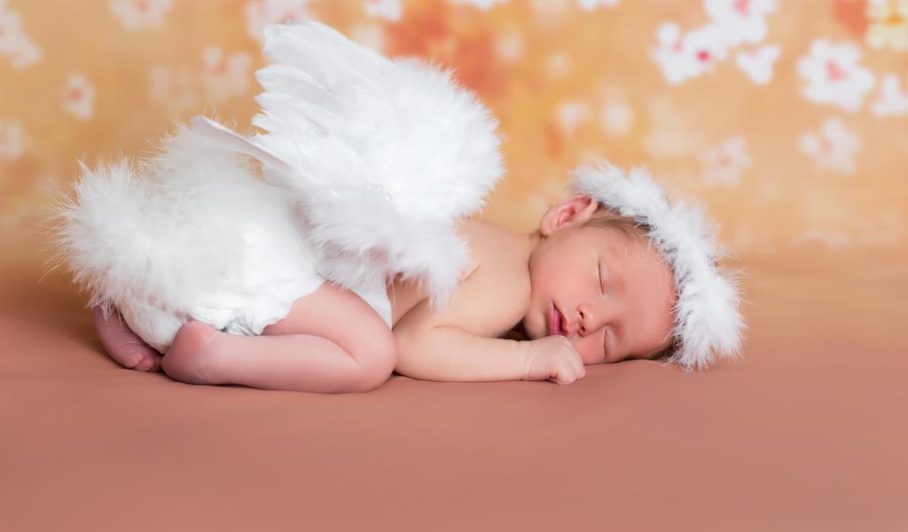 Обои Милый спящий младенец в костюме ангела