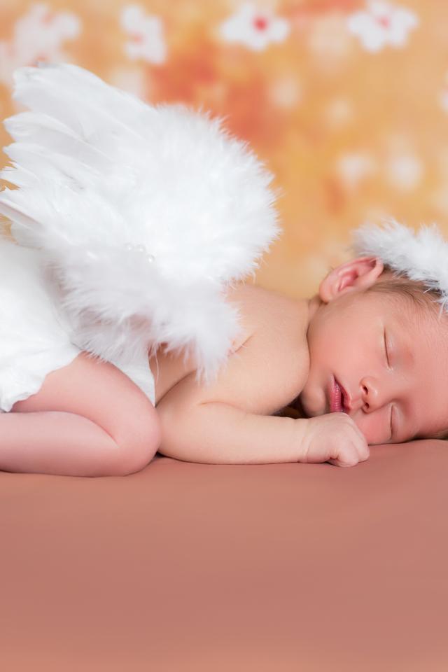 Обои Милый спящий младенец в костюме ангела