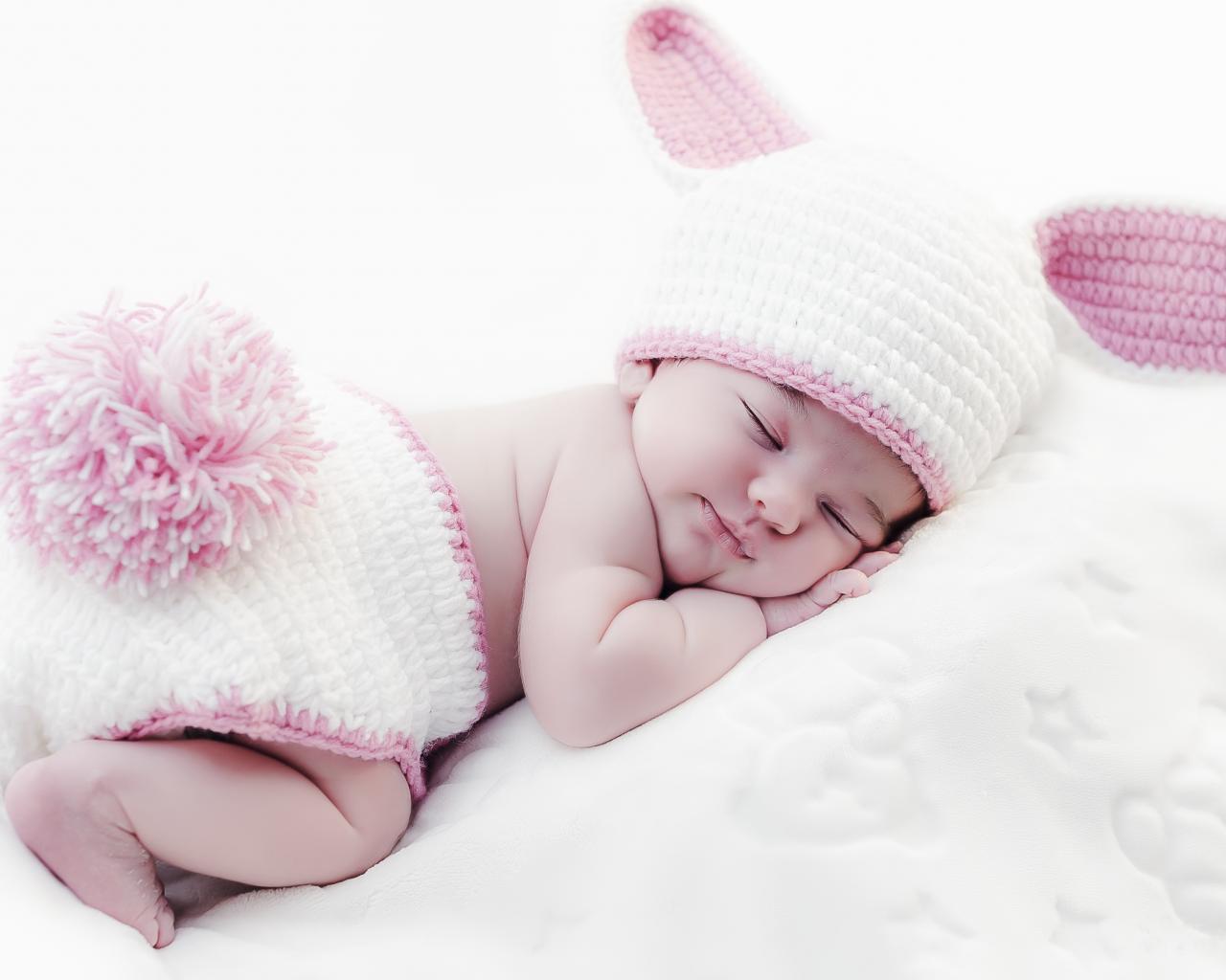 Обои Милый спящий младенец в костюме зайца