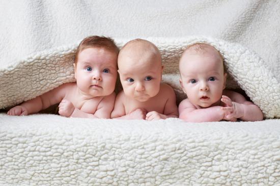 Обои Три младенца под белым теплым одеялом