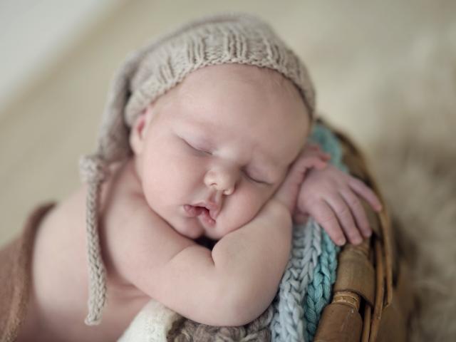 Обои Маленький грудной ребенок спит в вязаной шапке
