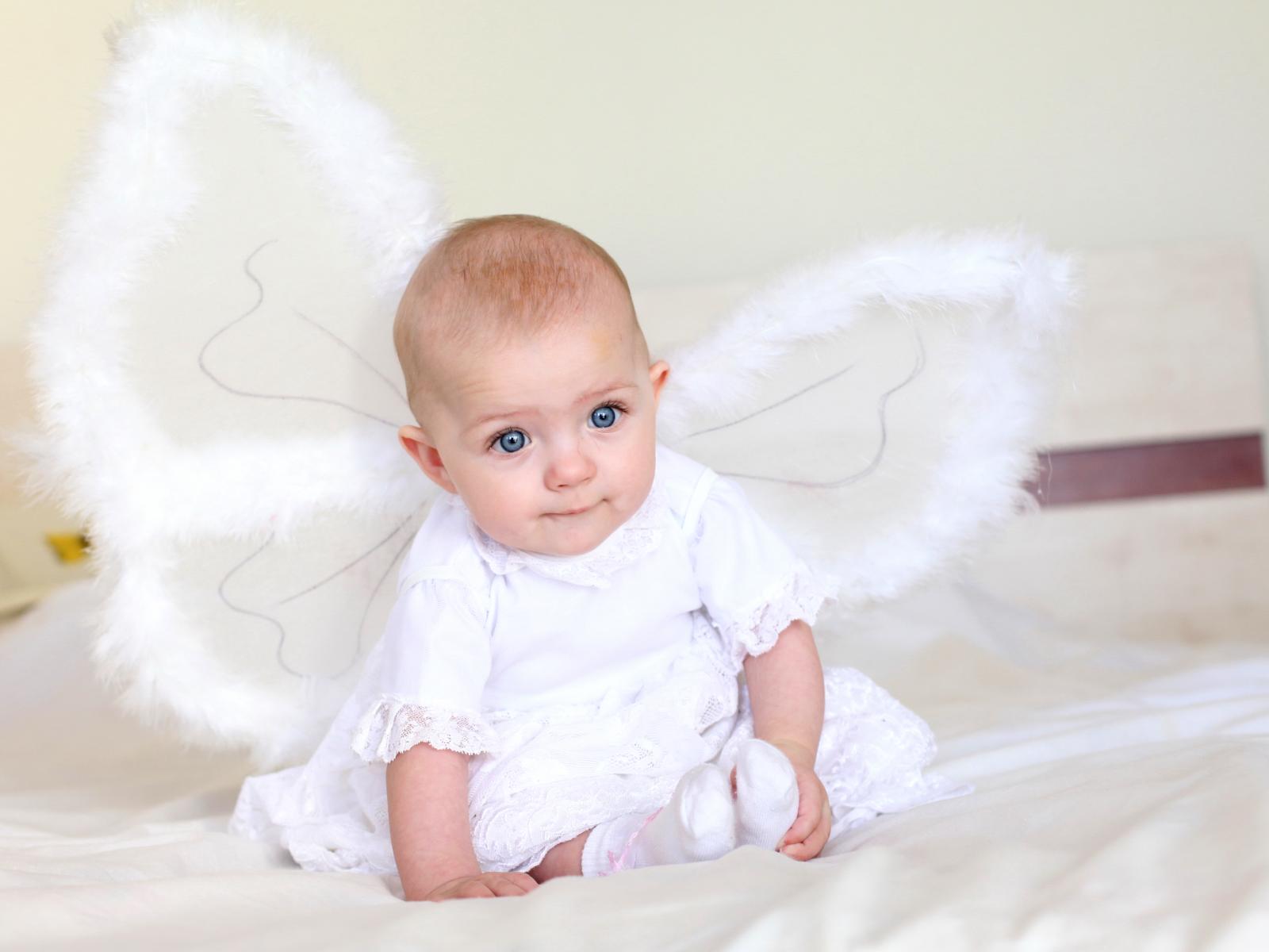 Обои Маленькая девочка в красивом белом платье с крыльями