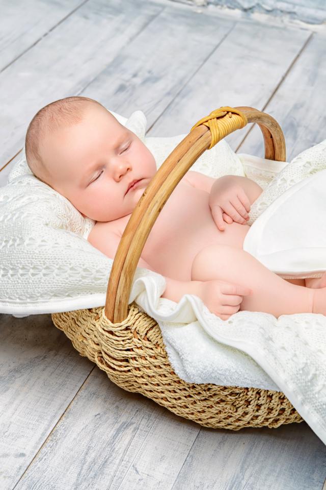 Обои Маленький младенец спит в корзине