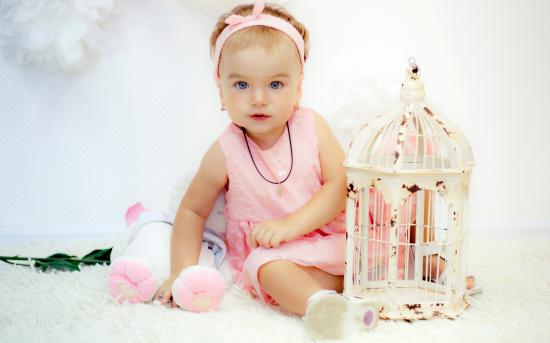 Обои Красивая маленькая девочка в розовом платье с клеткой