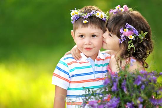 Обои Маленькие мальчик и девочка с венками из полевых цветов на голове