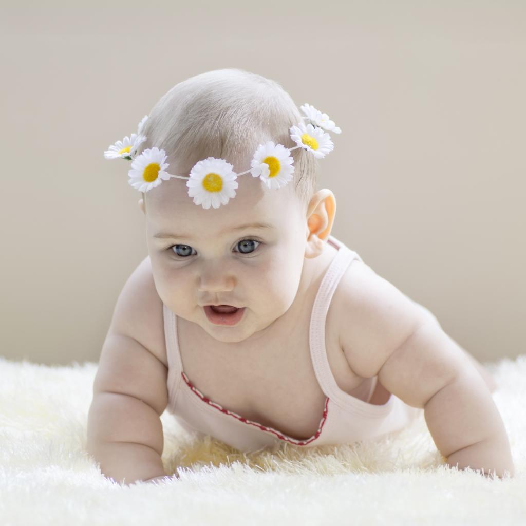 Обои Грудной ребенок с венком из белых ромашек на голове