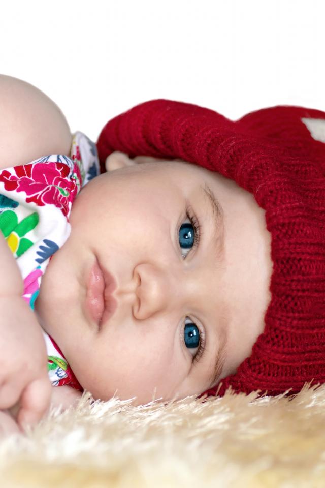 Обои Маленькая девочка в красной вязаной шапке
