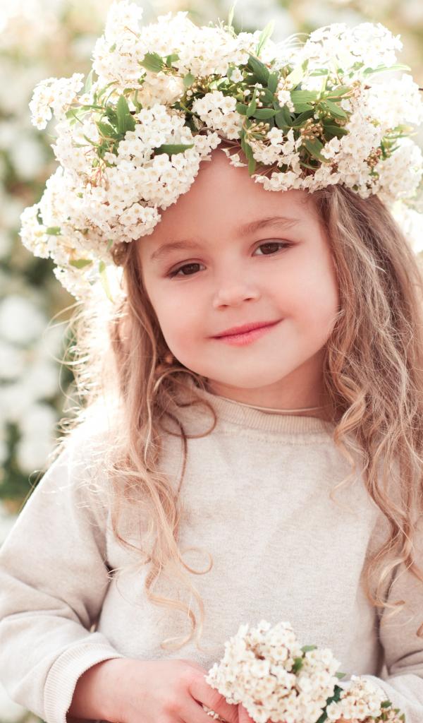Обои Маленькая девочка с венком из белых цветов на голове