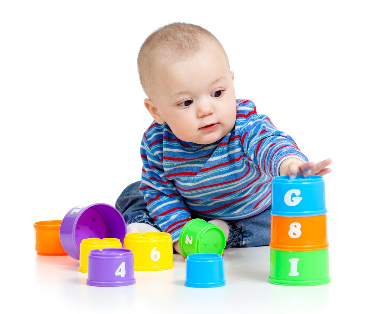 Обои Маленький мальчик играет с разноцветными игрушками