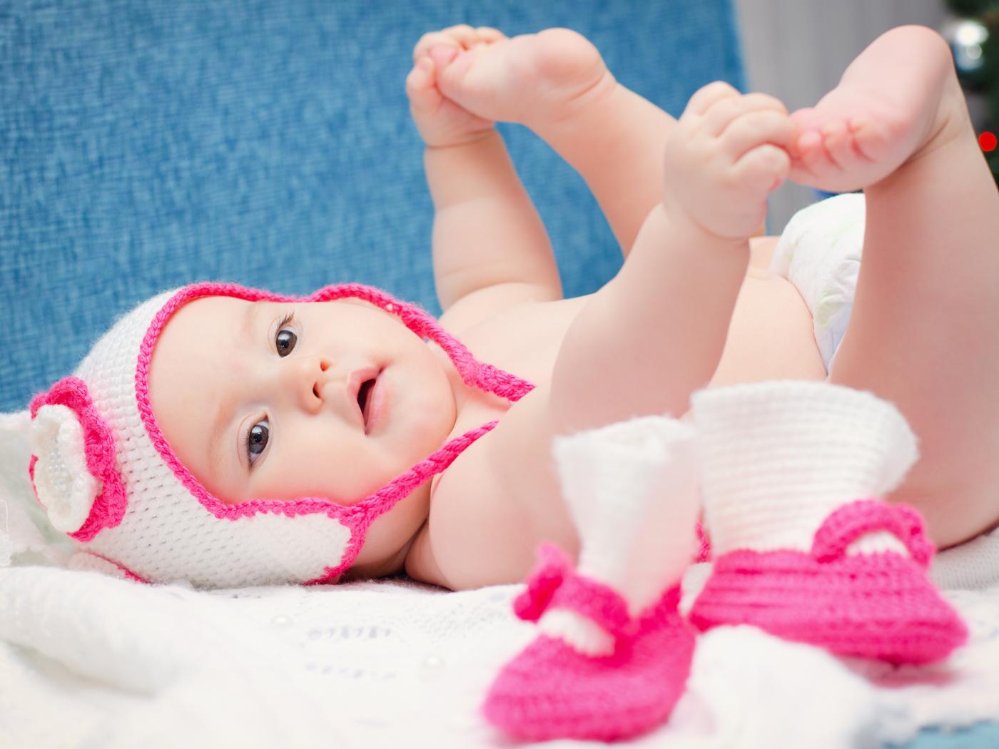 Обои Милый грудной ребенок в вязаной шапке
