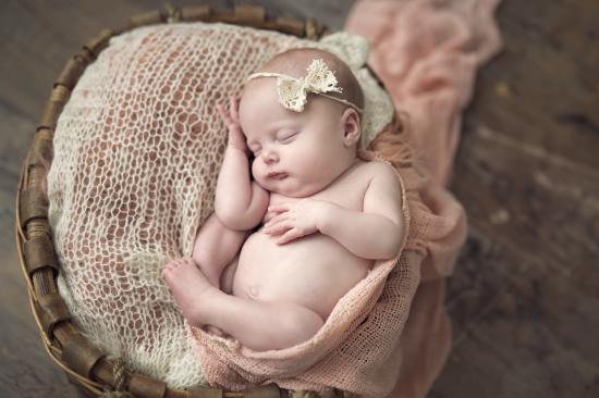 Обои Грудной ребенок с бантиком на голове спит в корзине