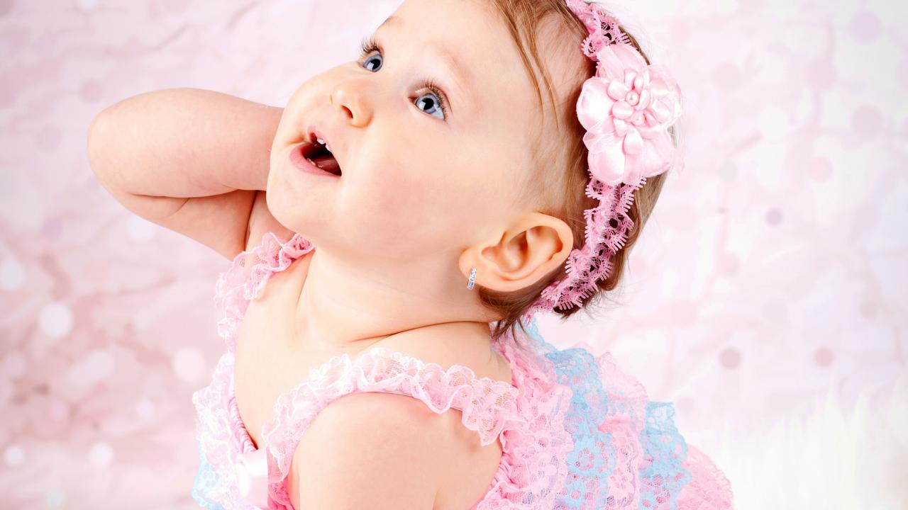 Обои Заинтересованный взгляд маленькой девочки в красивом платье