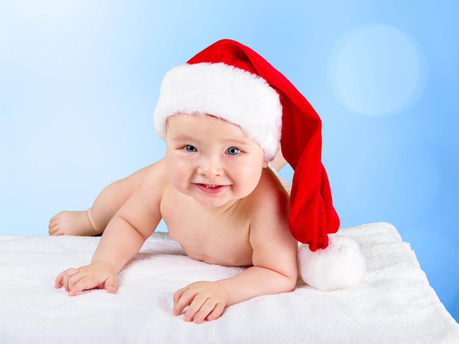 Обои Улыбающийся грудной ребенок в новогодней шапке