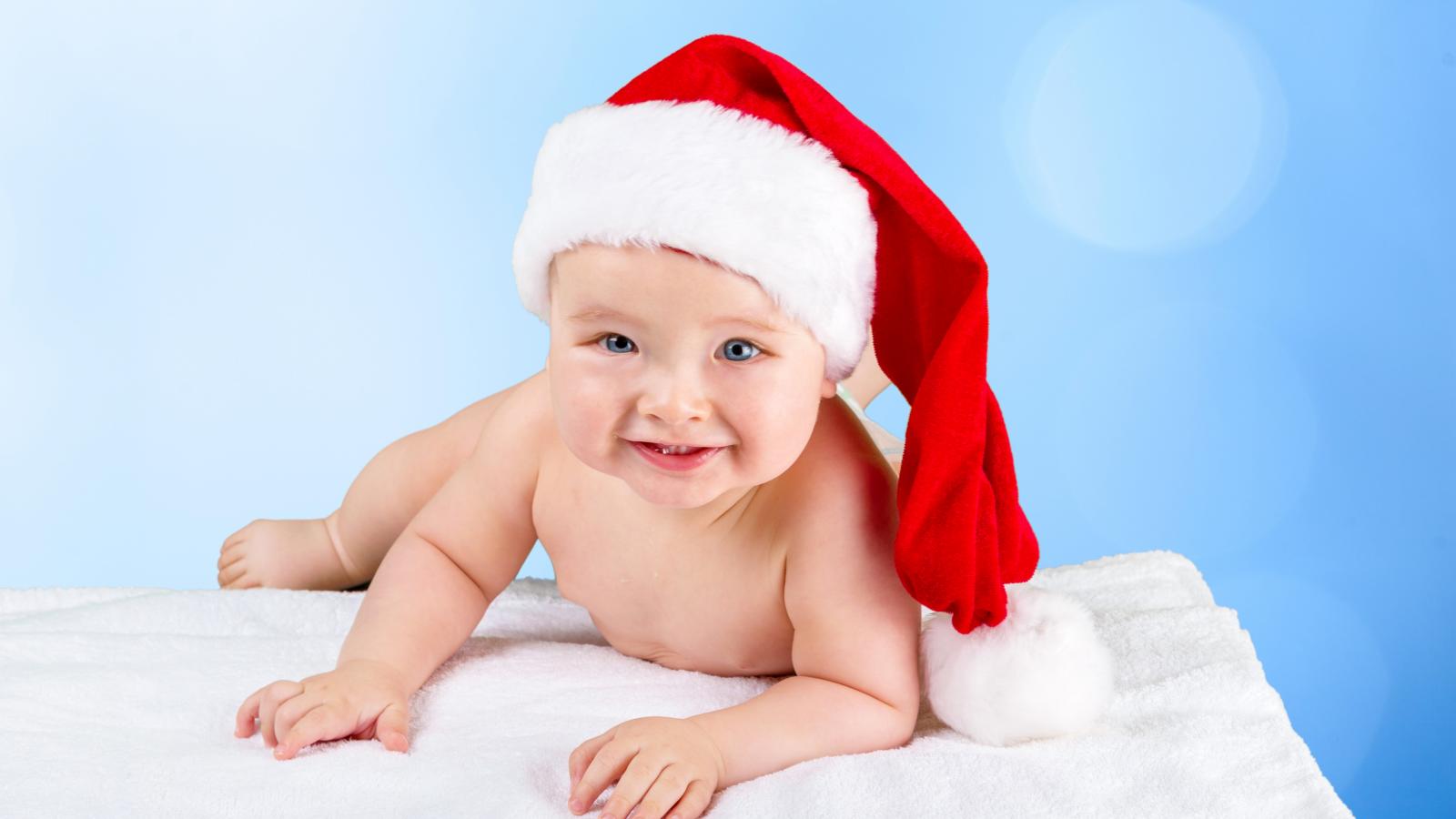 Обои Улыбающийся грудной ребенок в новогодней шапке
