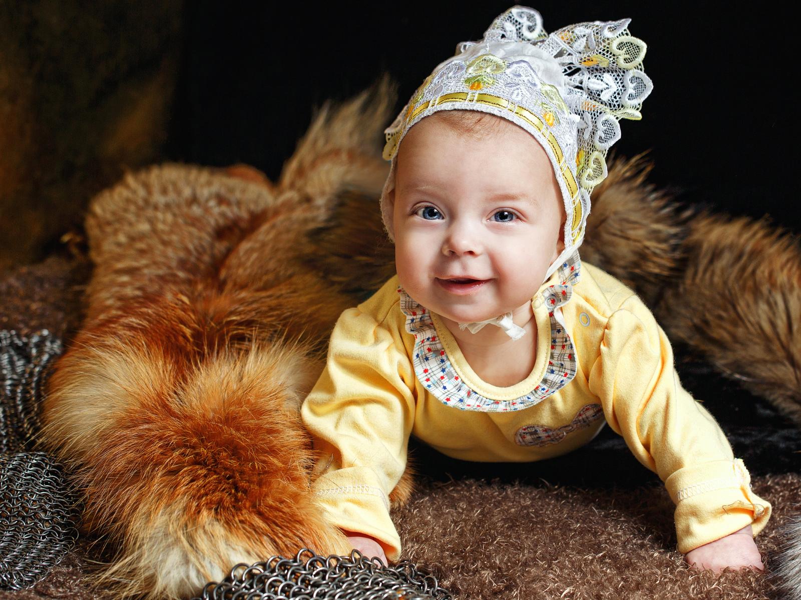 Обои Улыбающаяся голубоглазая девочка в шапке