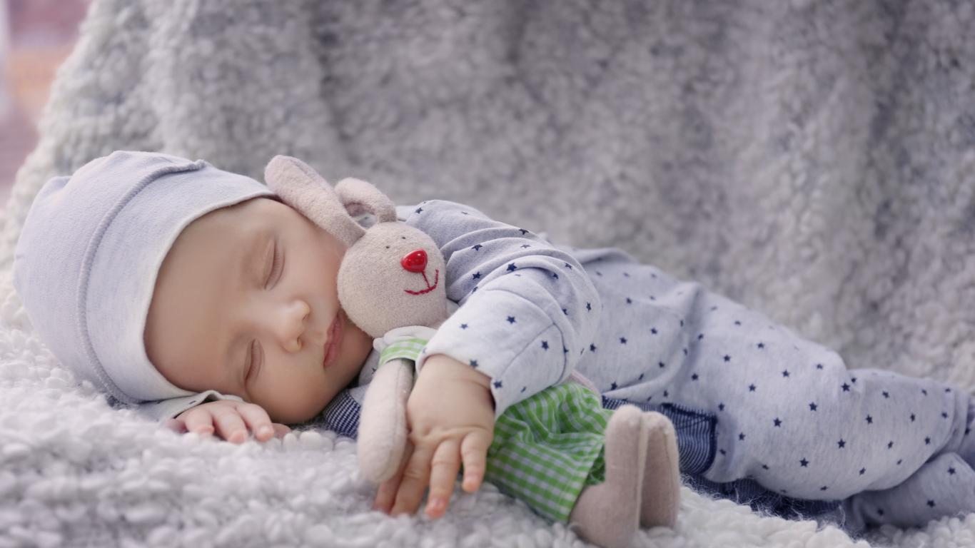 Обои Спящий грудной ребенок с вязаной игрушкой