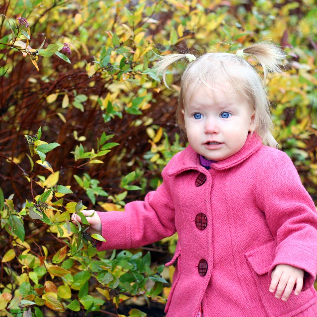 Обои Маленькая голубоглазая девочка в розовом пальто