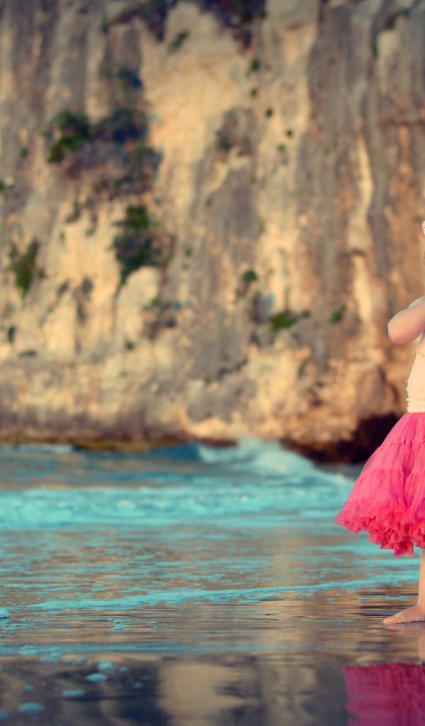 Обои Маленькая девочка в красивой розовой юбке на пляже