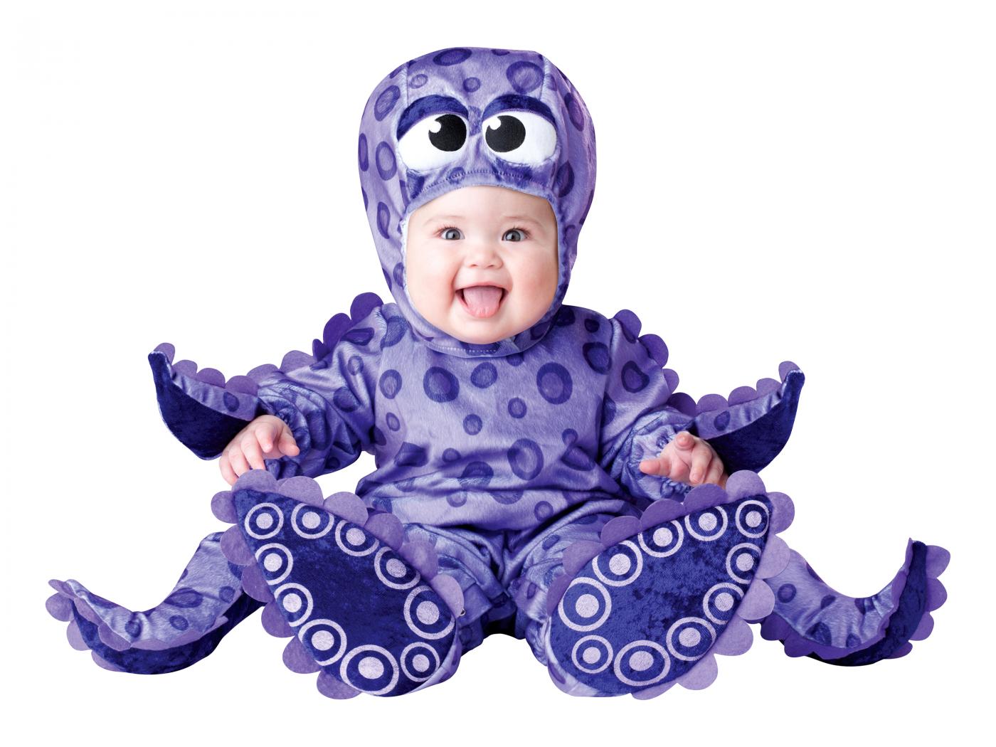 Обои Маленький улыбающийся малыш в забавном костюме