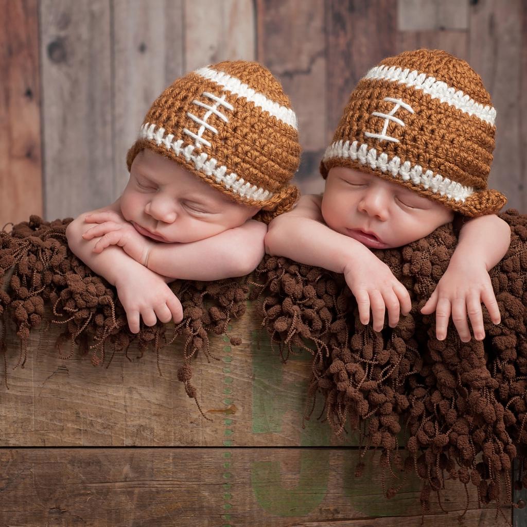 Обои Два милых спящих малыша в забавных вязаных шапках