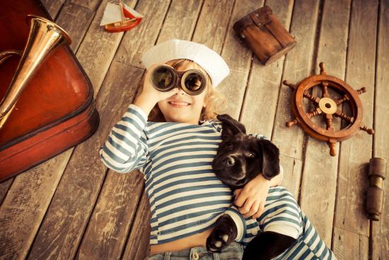 Обои Мальчик с собакой играют в матросов