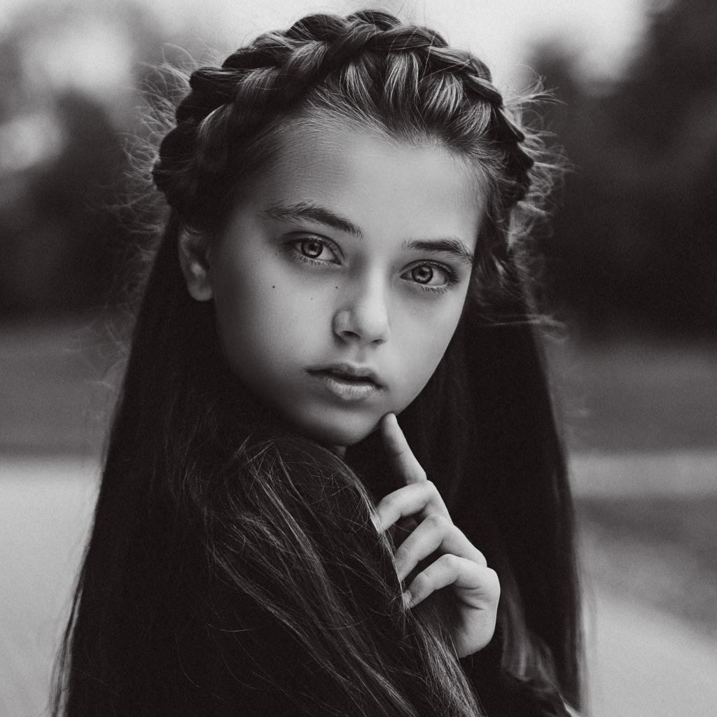 » Обои Маленькая девочка с красивой прической черно-белое фото