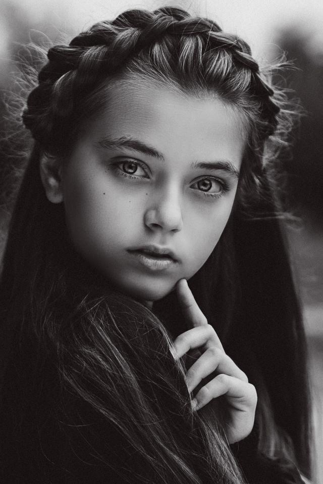 » Обои Маленькая девочка с красивой прической черно-белое фото