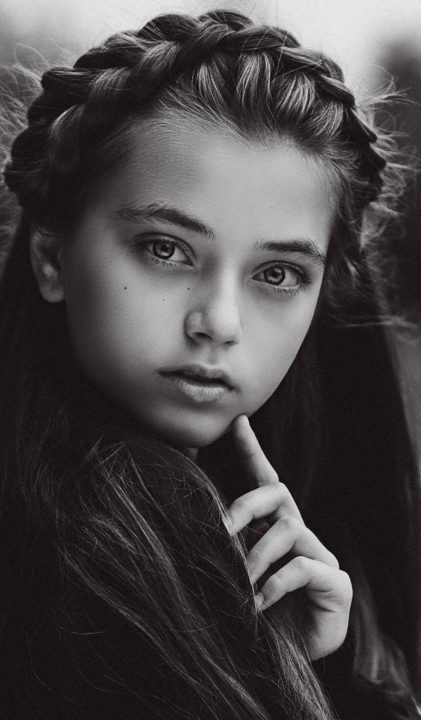 » Обои Маленькая девочка с красивой прической черно-белое фото