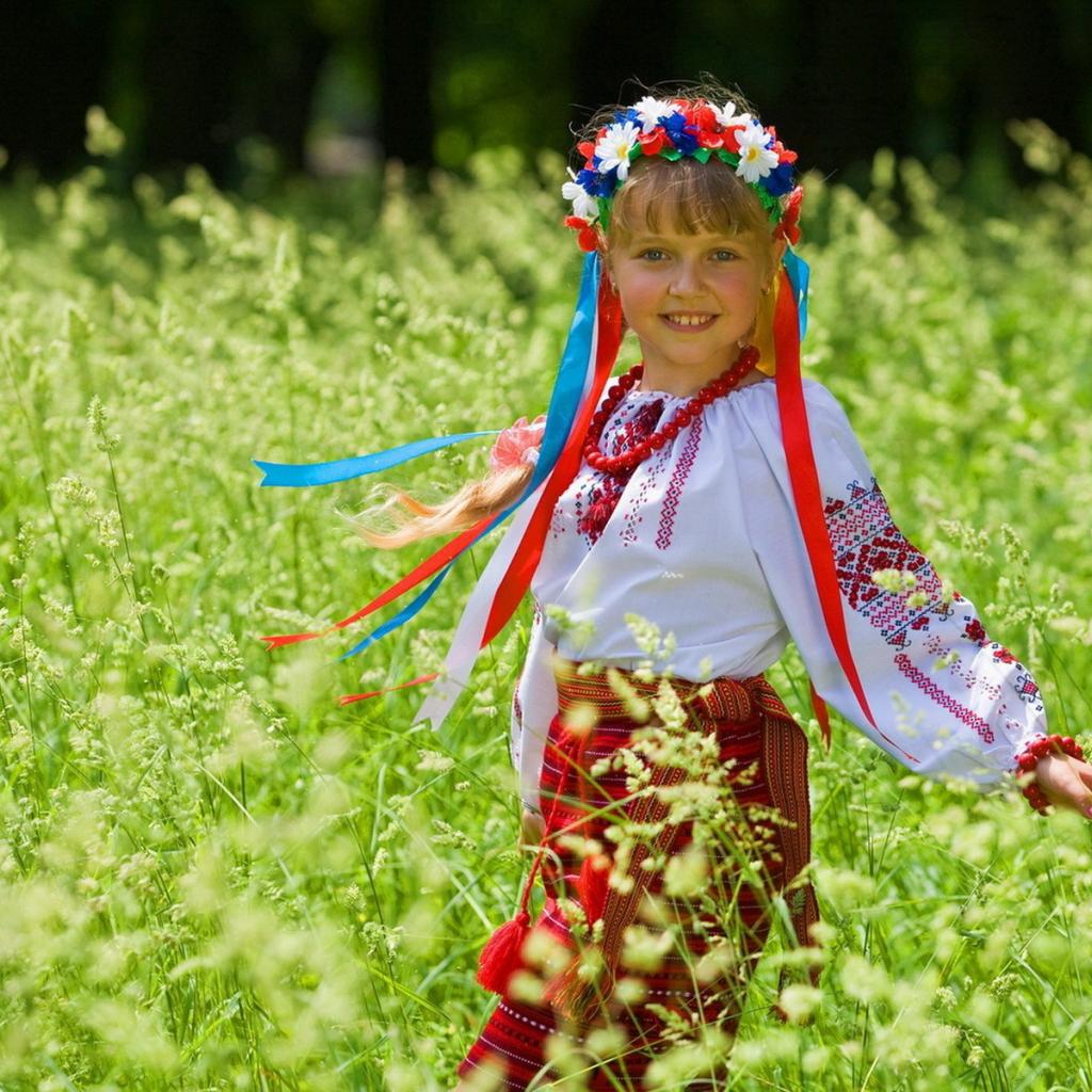 Обои Маленькая девочка в костюме с венком на голове