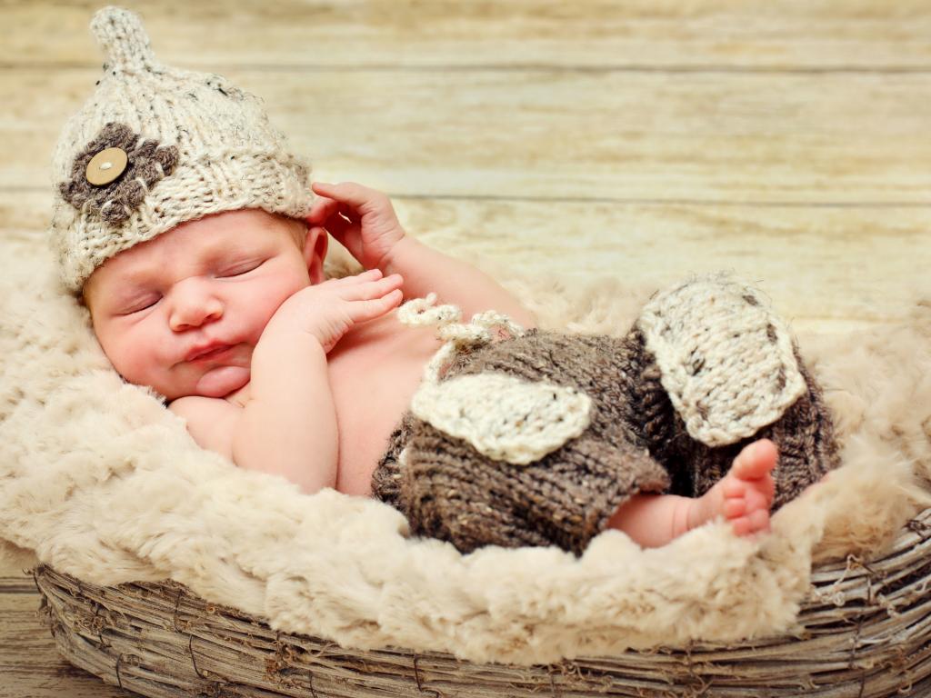 Обои Маленький спящий младенец в шапке