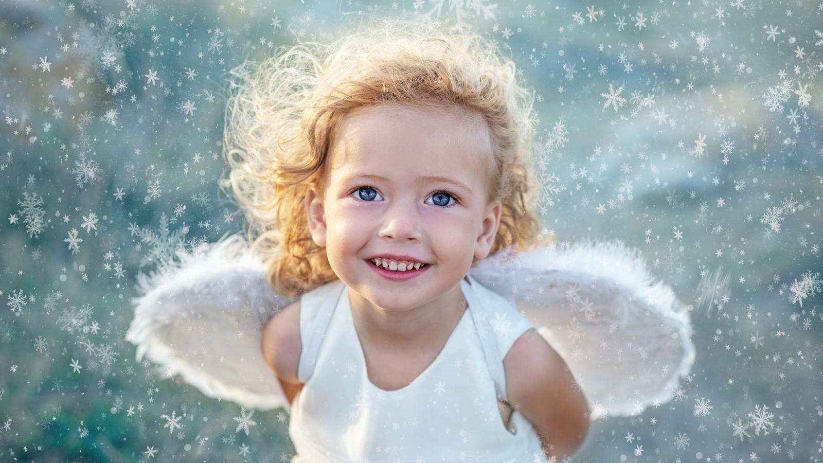 Обои Красивая голубоглазая девочка с крыльями ангела