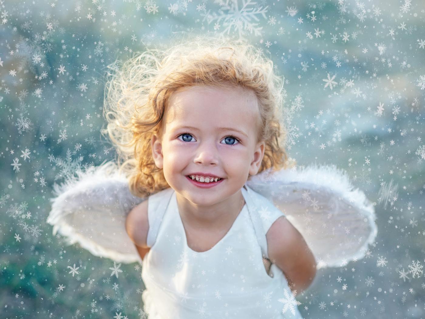 Обои Красивая голубоглазая девочка с крыльями ангела