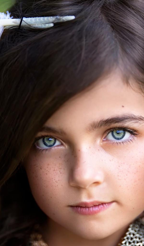 Обои Маленькая красивая девочка с белым пером в волосах