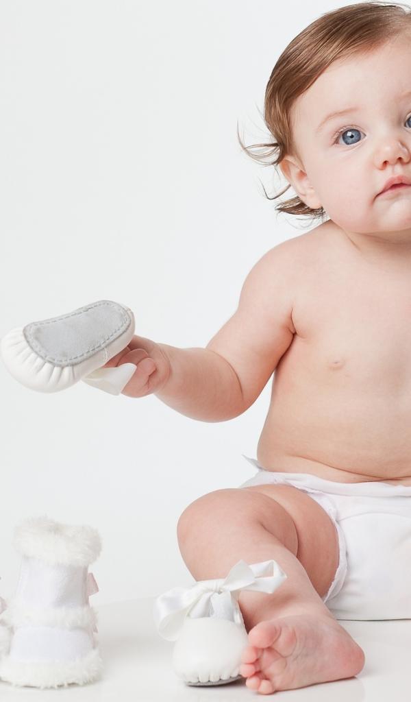 Обои Маленький грудной ребенок с детской обувью