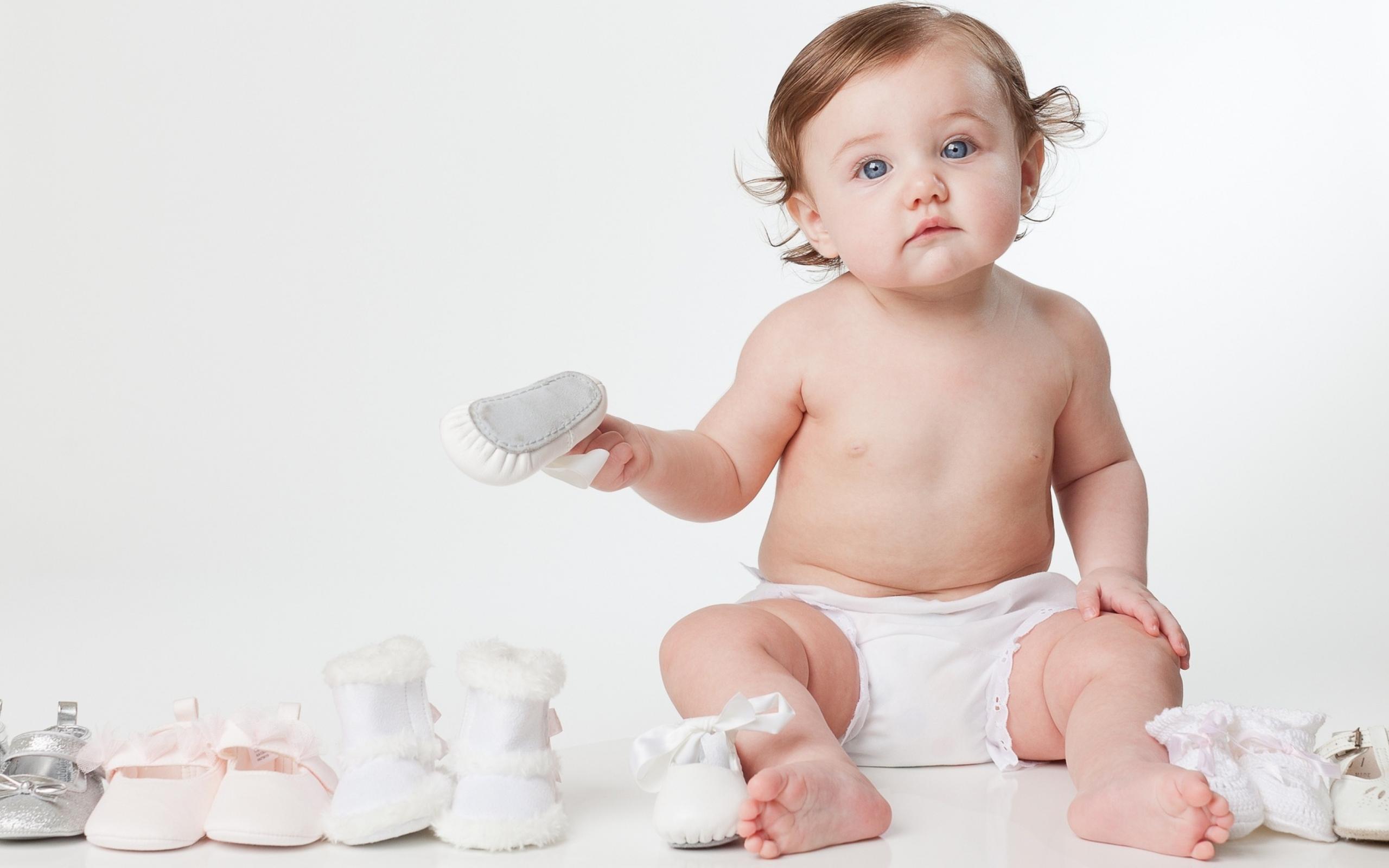 Обои Маленький грудной ребенок с детской обувью