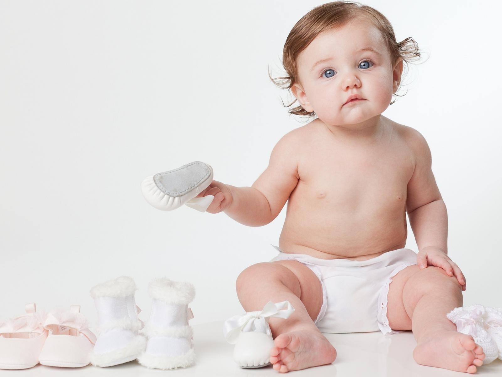 Обои Маленький грудной ребенок с детской обувью