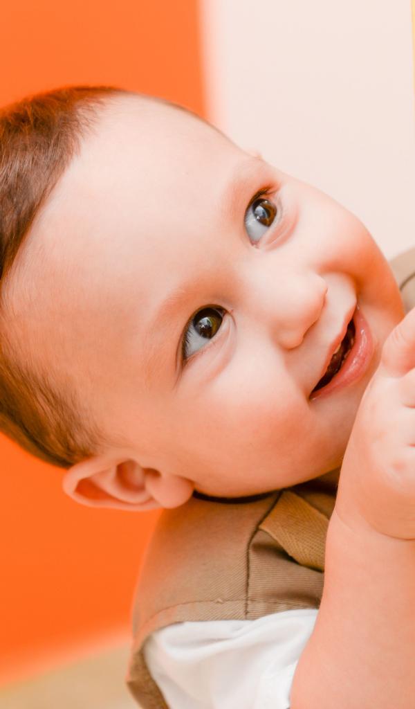 Обои Маленький любопытный мальчик выглядывает из-за стены