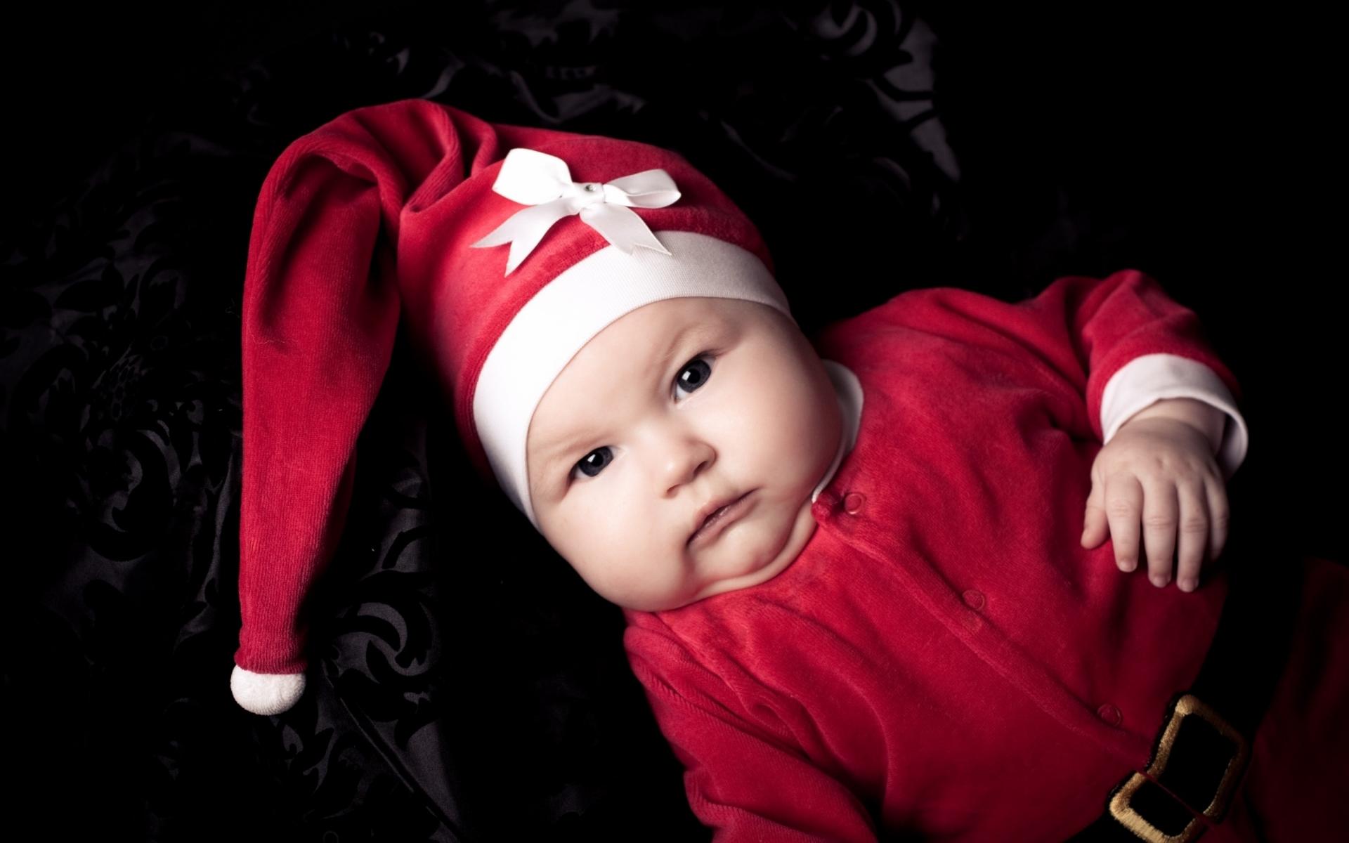 Обои Грудной ребенок в красном новогоднем костюме